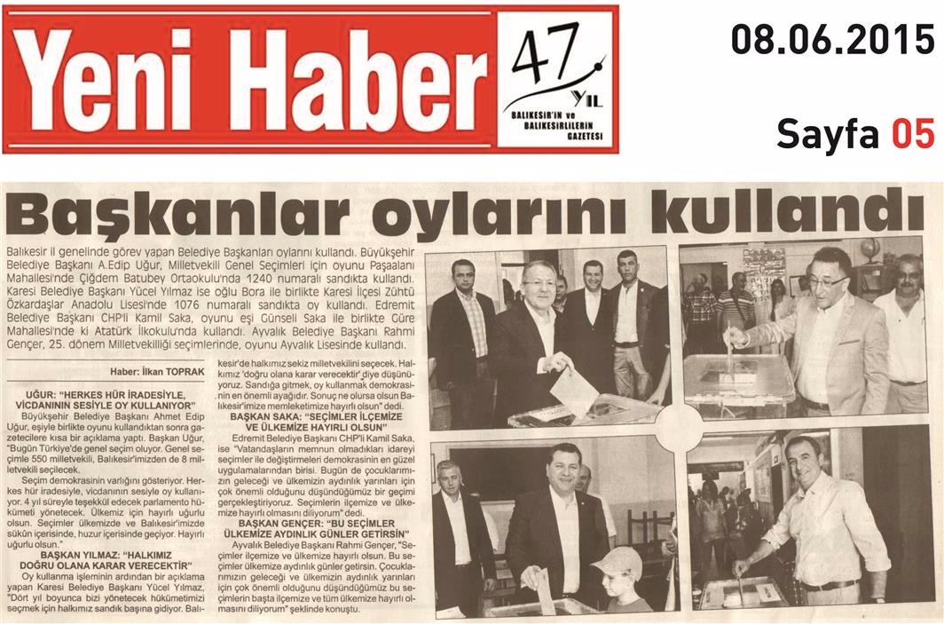 08.06.2015 Basında Çıkan Haberlerimiz