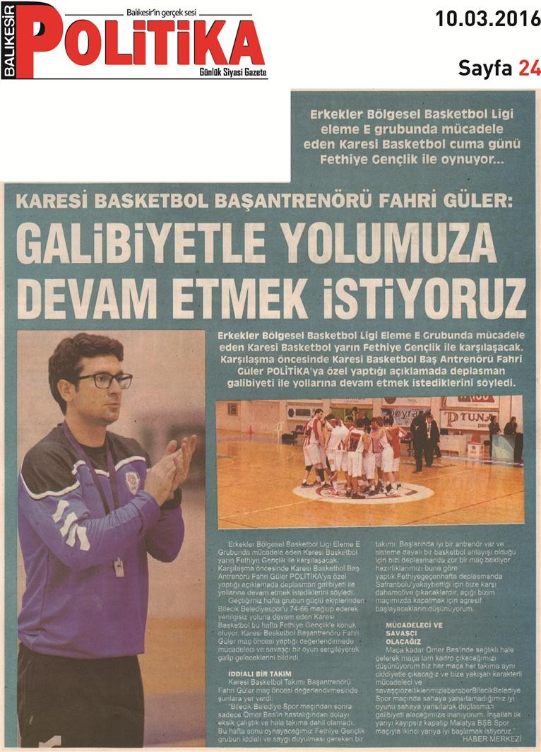 10.03.2016 Basında Çıkan Haberlerimiz