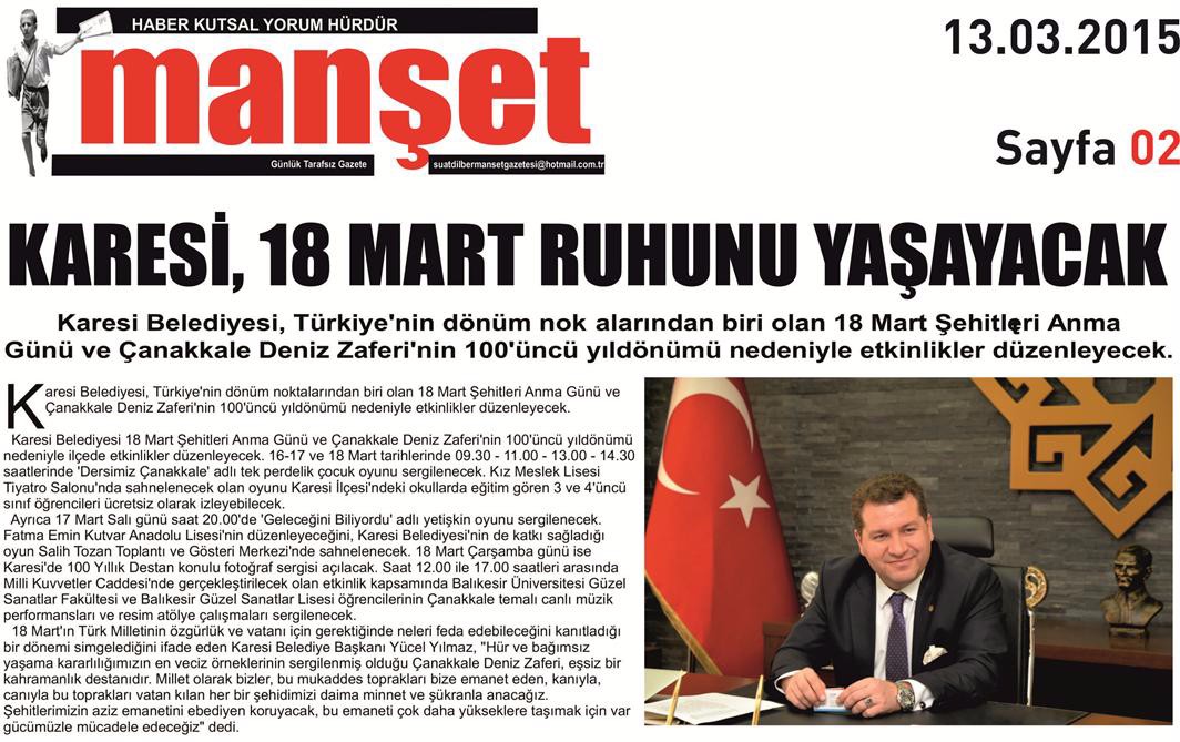 13.03.2015 Basında Çıkan Haberlerimiz