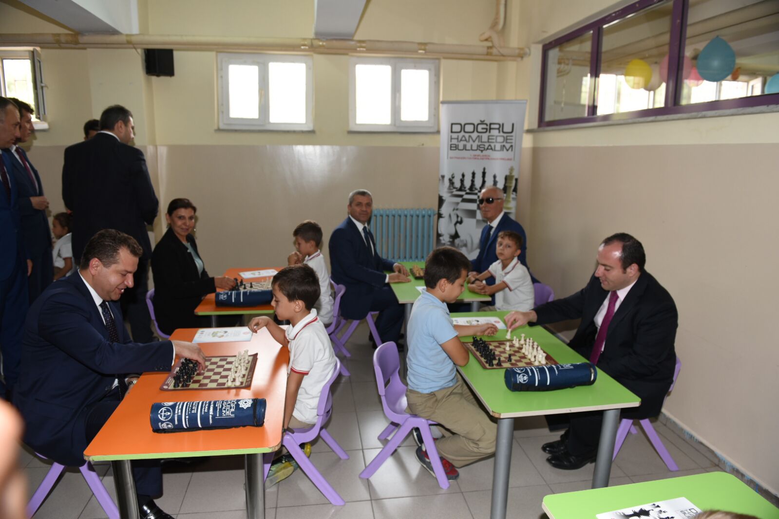 Konuşmalar sonrası Karesi Belediye Başkanı Yücel Yılmaz, TSF Başkanı Gülkız Tulay, Karesi Kaymakamı Abdulkadir Demir, İl Milli Eğitim Müdürü Yakup Yıldız, Karesi İlçe Milli Eğitim Müdürü Ramazan Konakbay ve Görme Engelli Avukat Salih Mehmet Aslan ile 1. sınıf öğrencileri ile karşılıklı satranç müsabakası yaptılar.